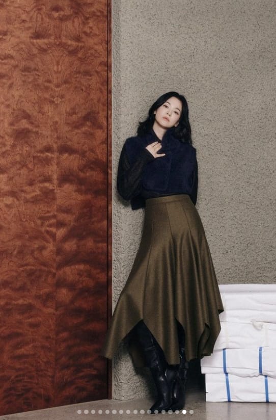 결론부터 말씀드리면, 송혜교의 롱치마 스타일은 종아리 기장과 하이웨이스트 조합으로 완성됩니다.